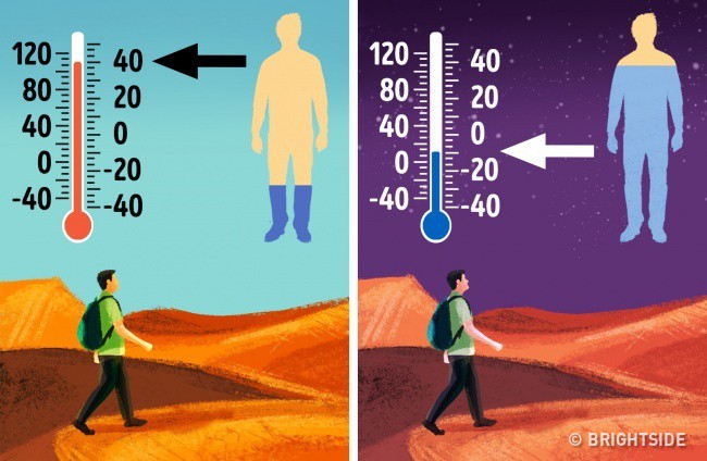 – Nên di chuyển vào ban đêm: Nhiệt độ chênh lệch giữa ngày và đêm trong sa mạc là rất lớn, nhưng cũng nhờ vậy mà bạn có thể di chuyển dài hơn mà cơ thể không bị mất nước quá nhiều.